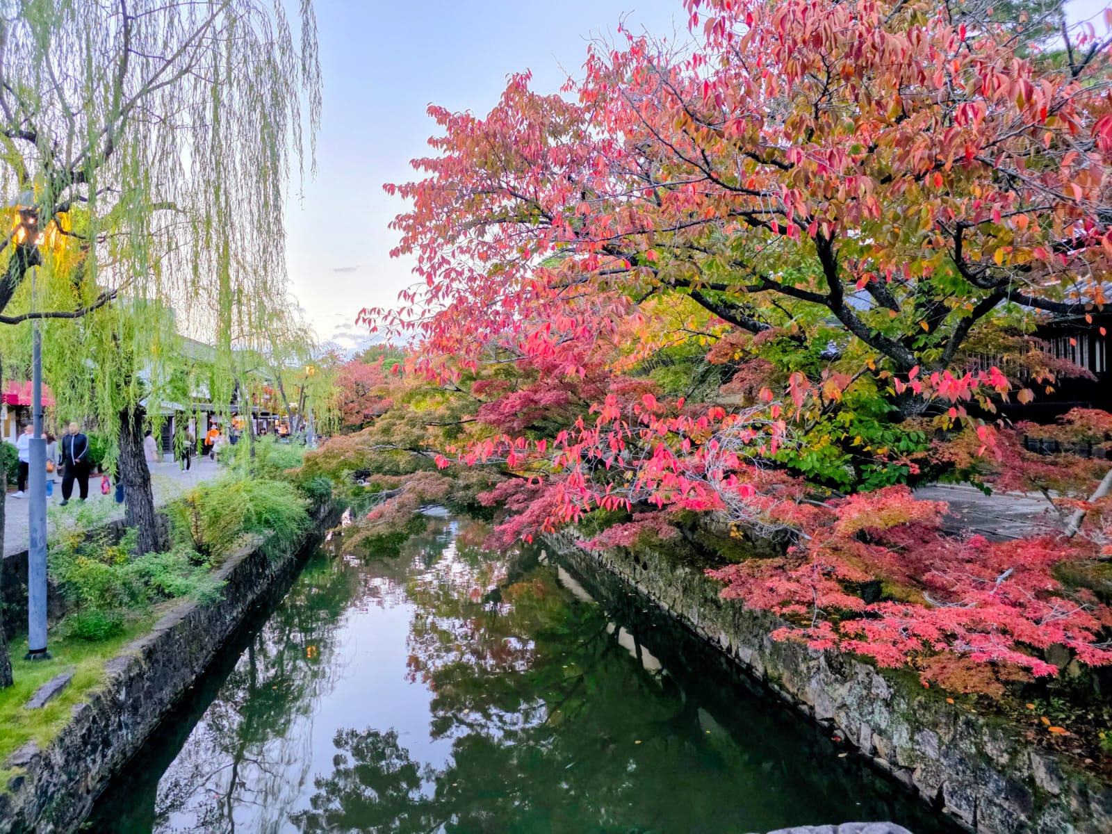 עצי שלכת נצבעים באור אחרון של יום – חוויה יפנית עונתית.